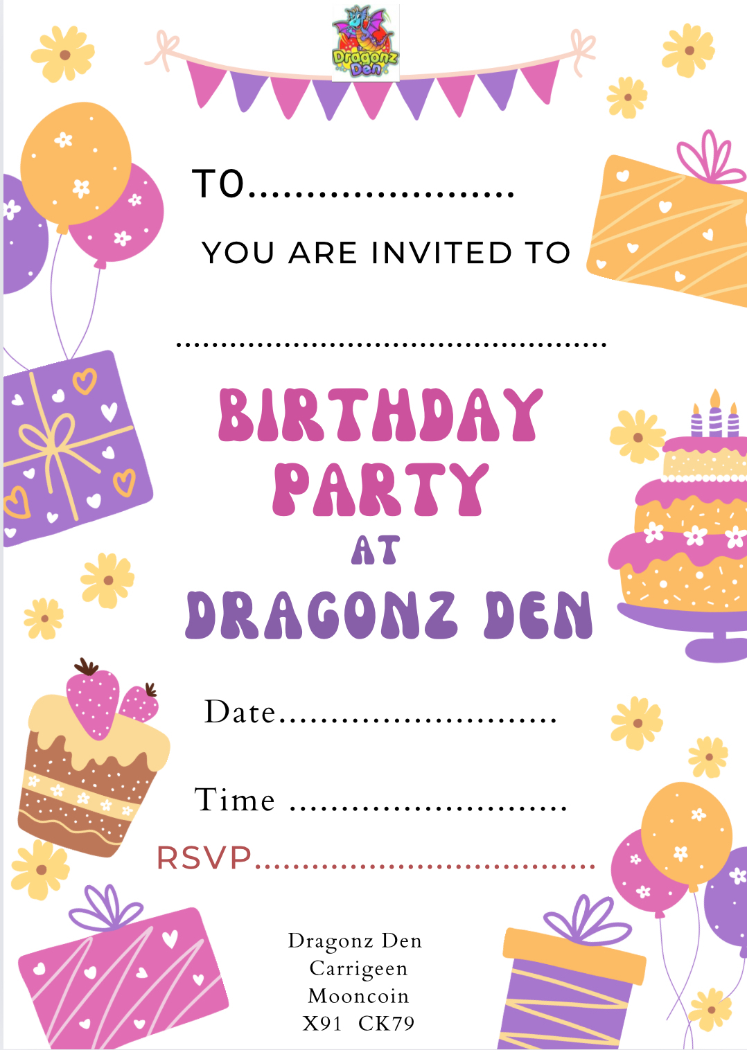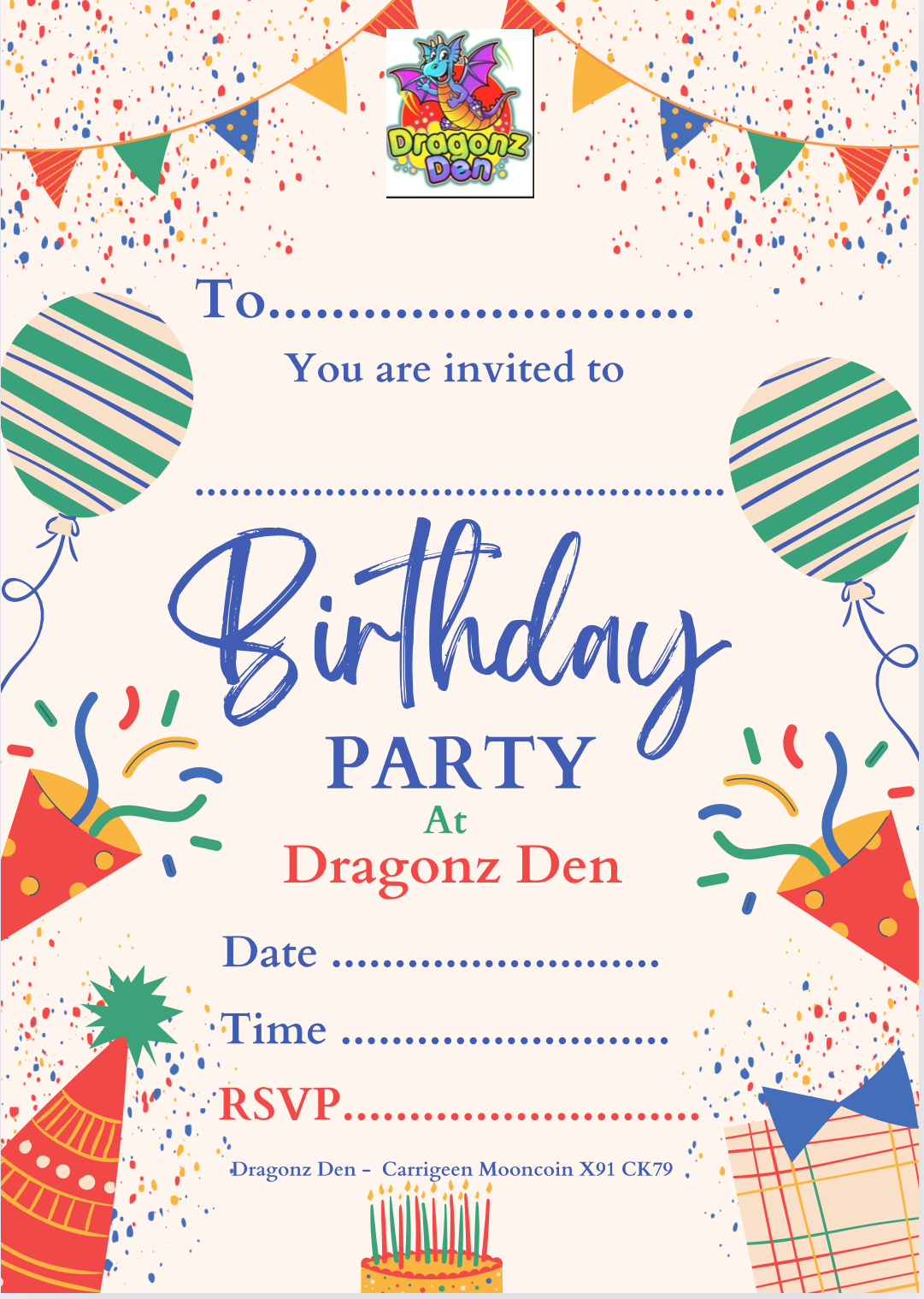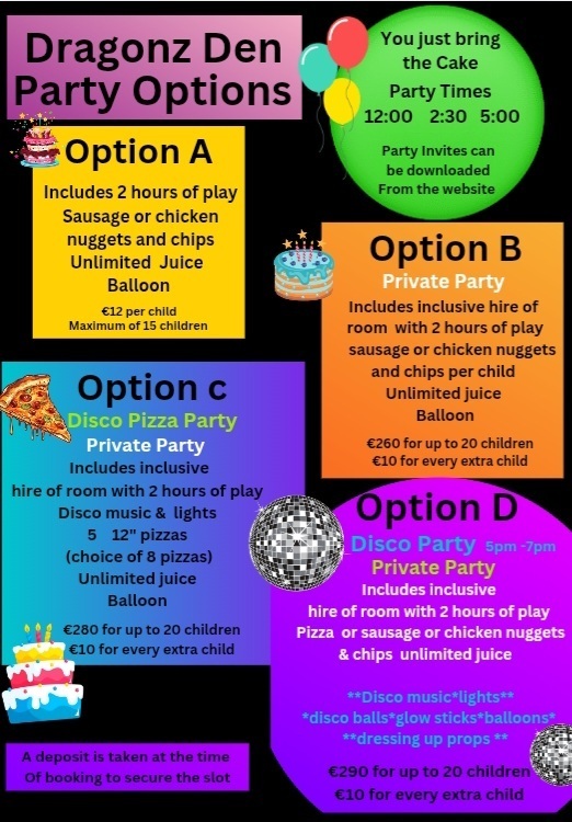 Dragonz Den is based on a 'Castle Theme' as we are only half a mile from Corluddy Castle. 8 km from Waterford City just off the N24.