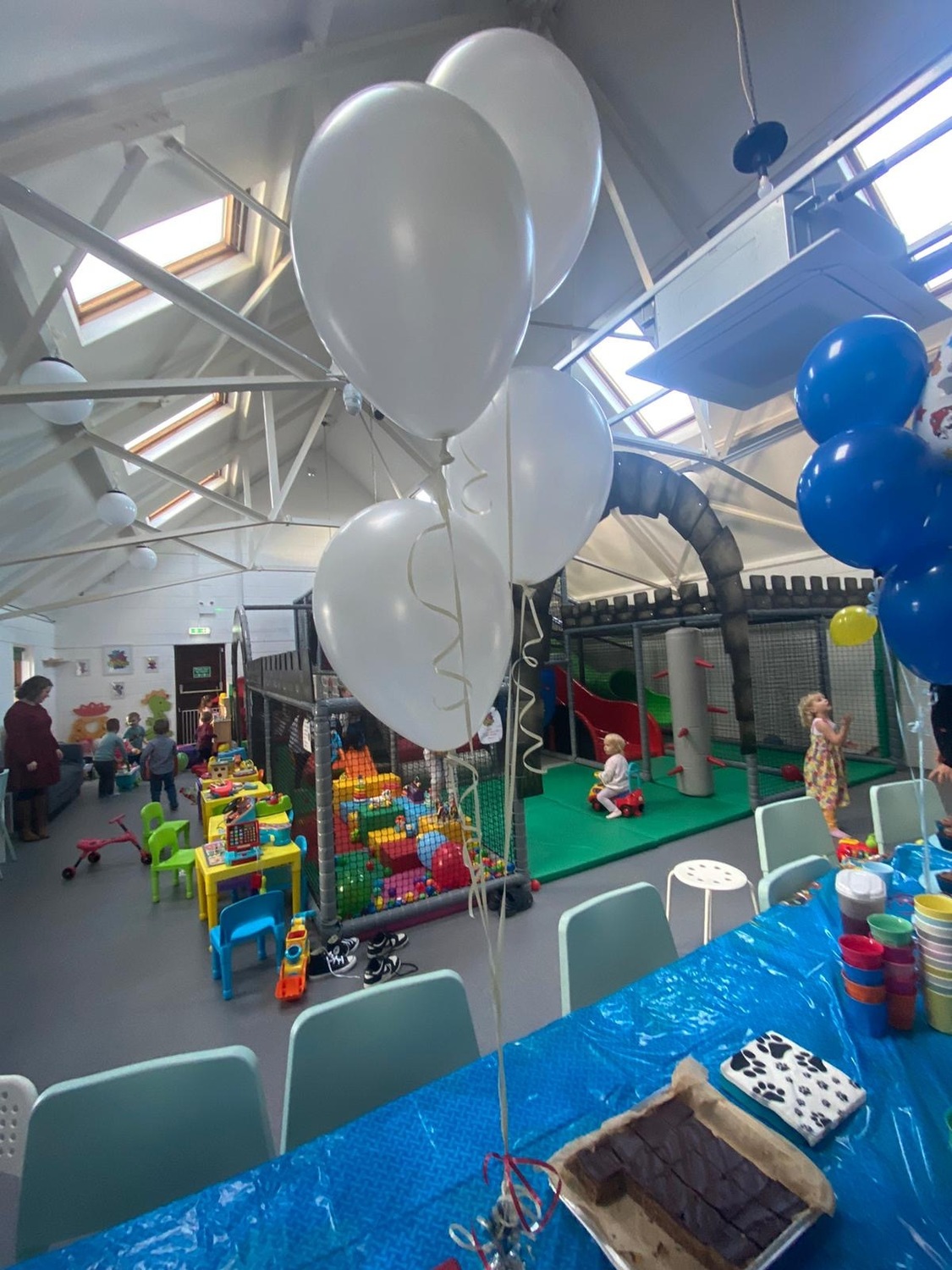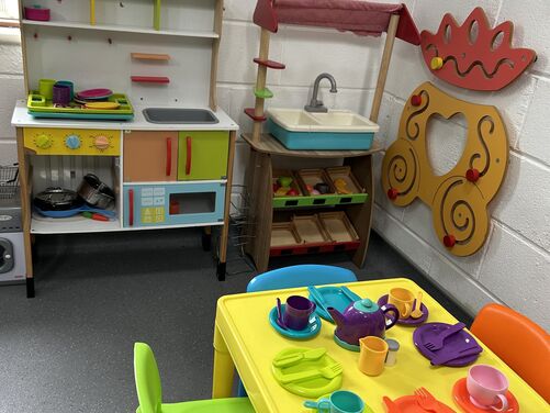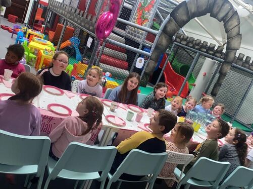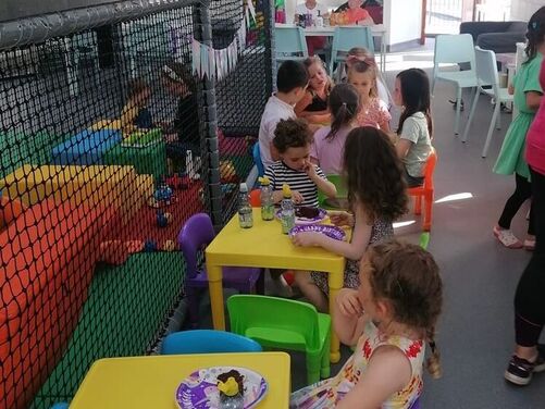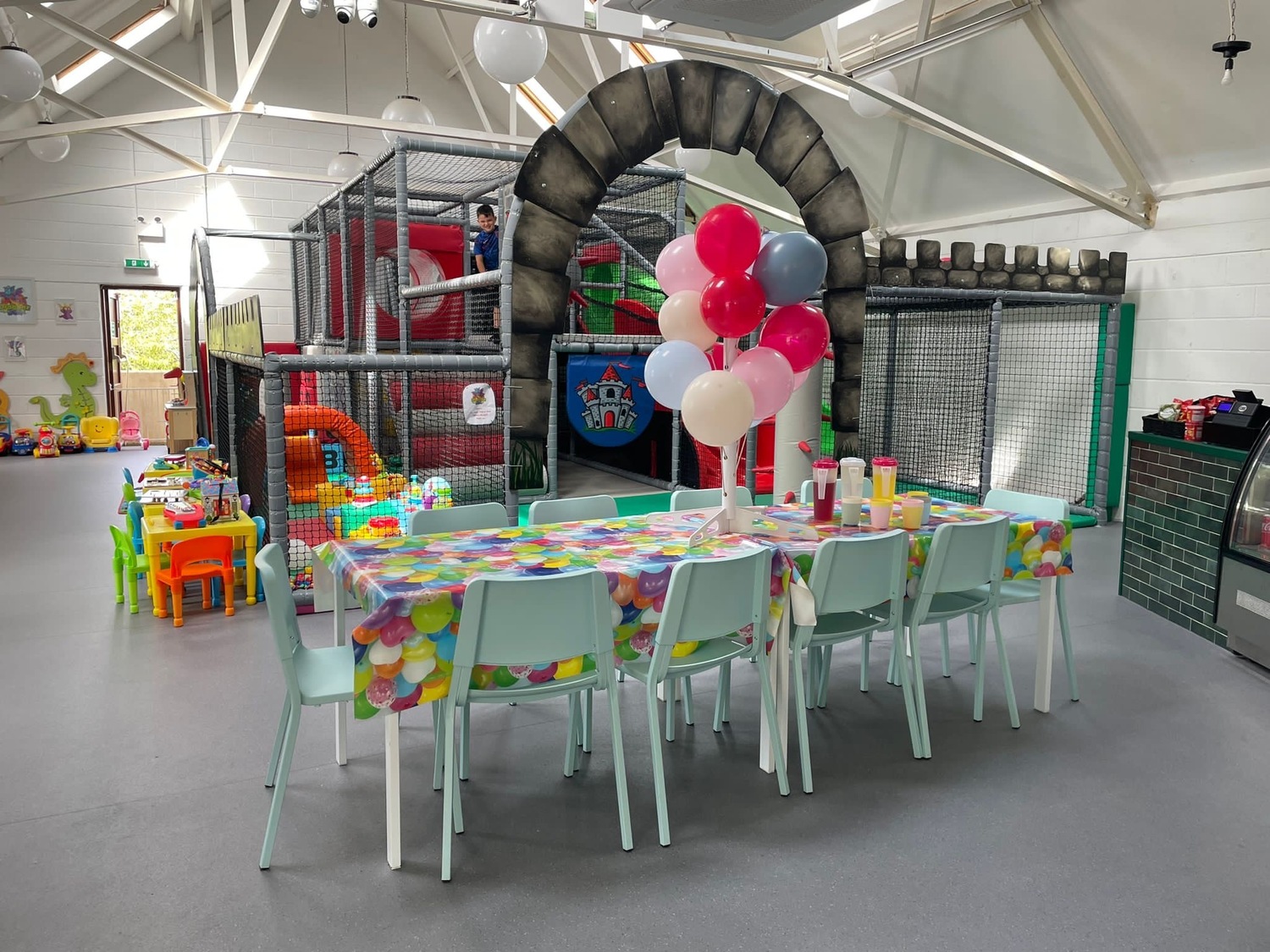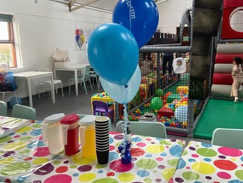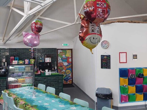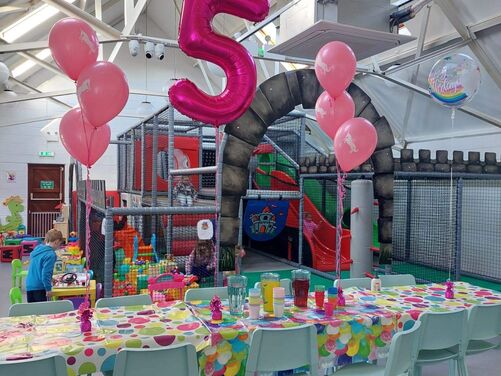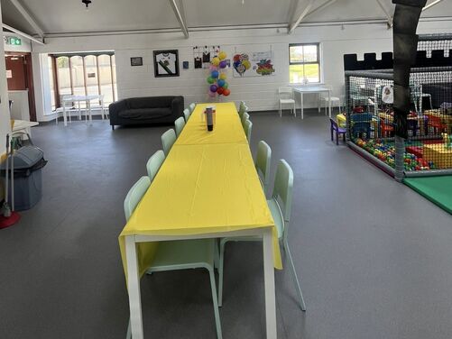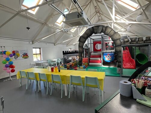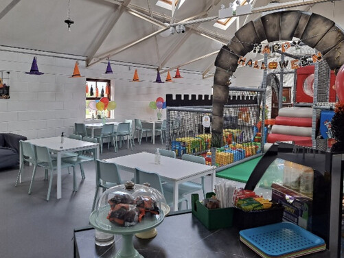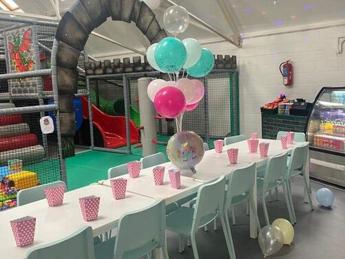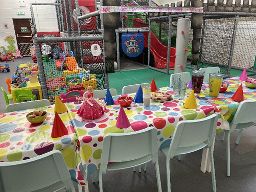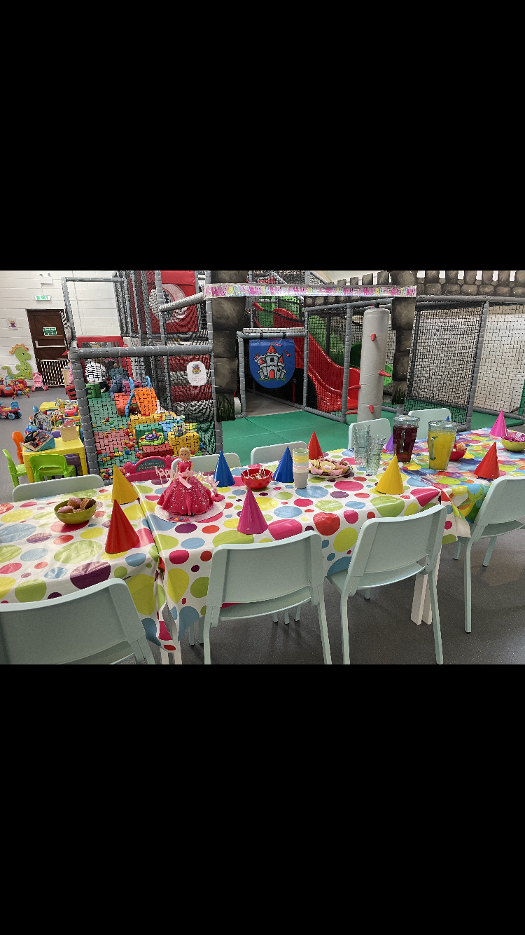 Plenty of car parking space. A 'Castle themed' soft indoor play area for the children . Whilst the children burn off that energy why not relax on one of our sofas with a Coffee and snack and free WIFI - enabling you to work, shop or socialize. We have a disabled toilet equipped with nappy changing facilities. Inclusive hire of room for 2 hour parties available .
