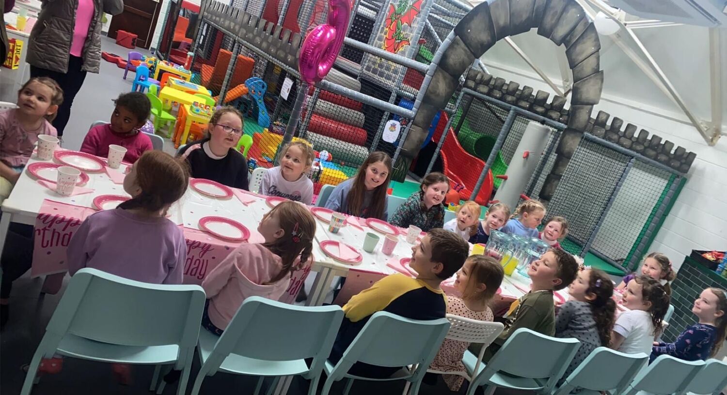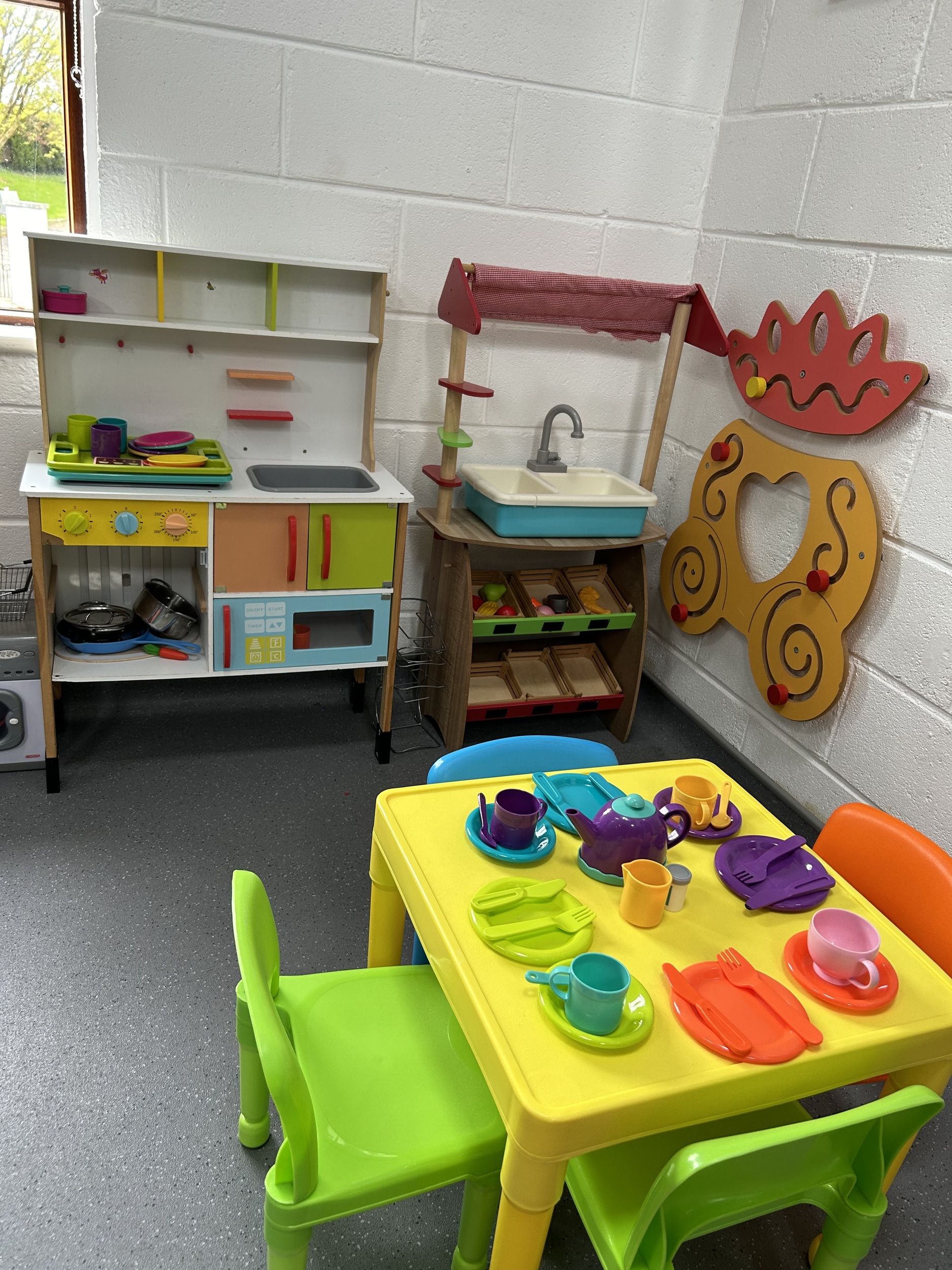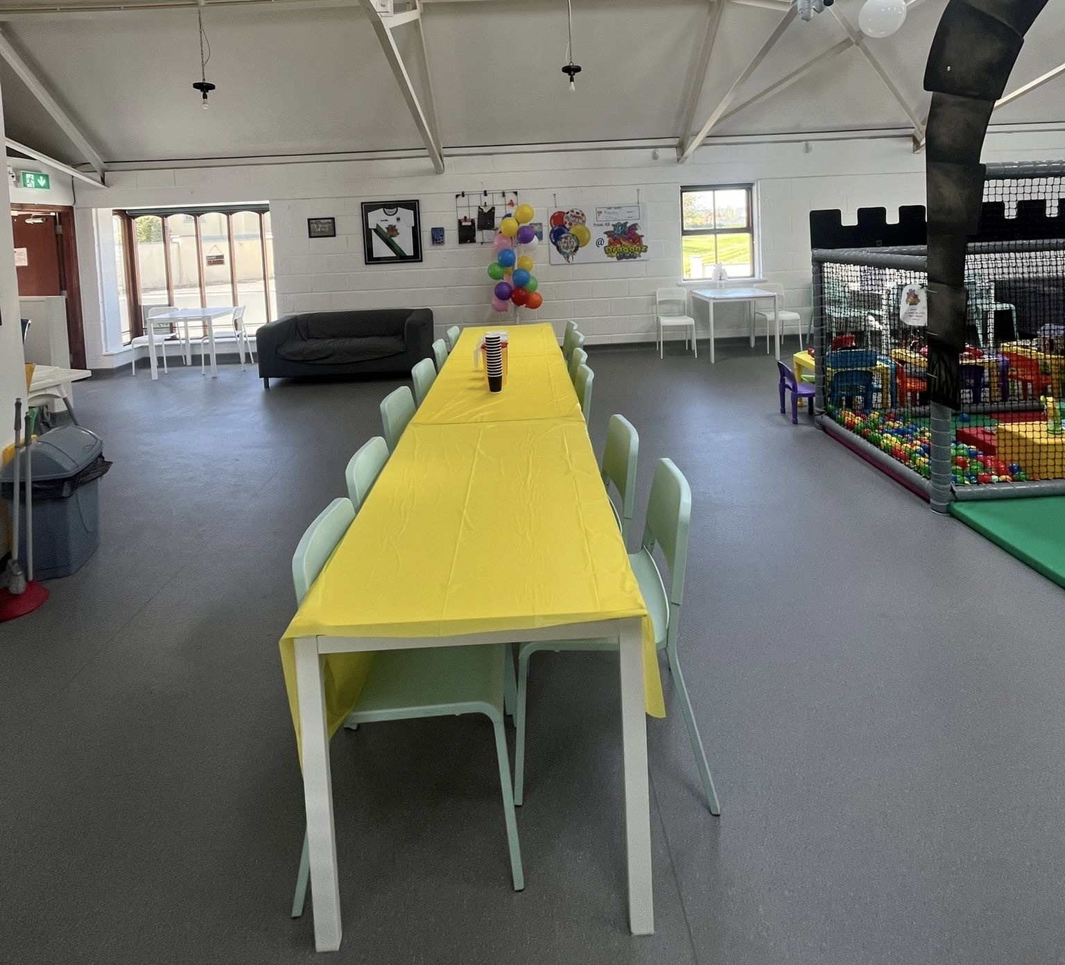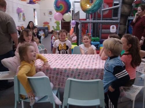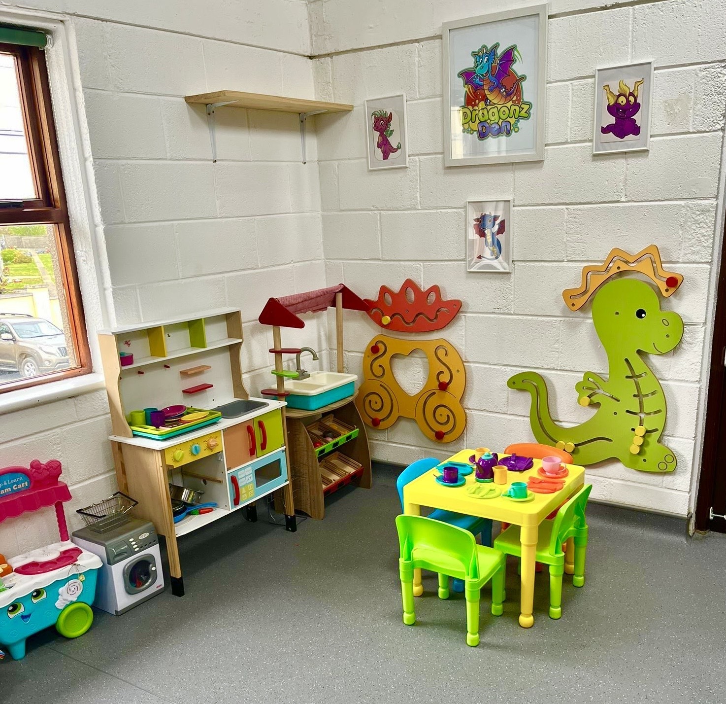 Plenty of car parking space. A 'Castle themed' soft indoor play area for the children . Whilst the children burn off that energy why not relax on one of our sofas with a Coffee and snack and free WIFI - enabling you to work, shop or socialize. We have a disabled toilet equipped with nappy changing facilities. Inclusive hire of room for 2 hour parties available .