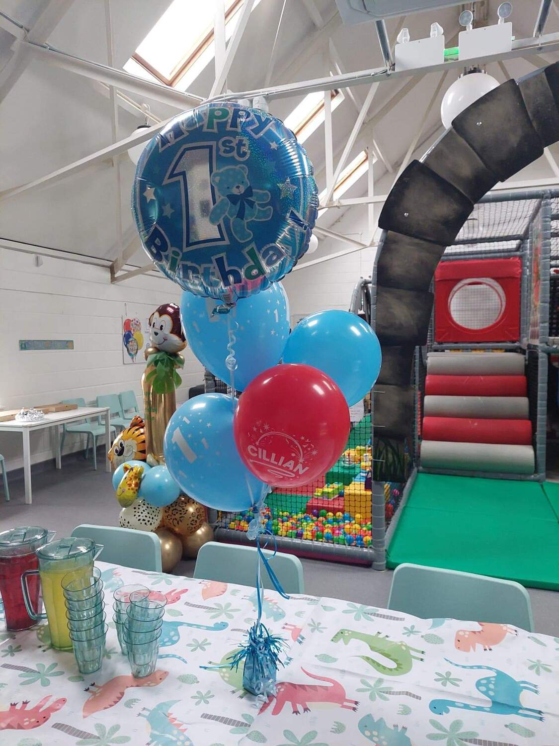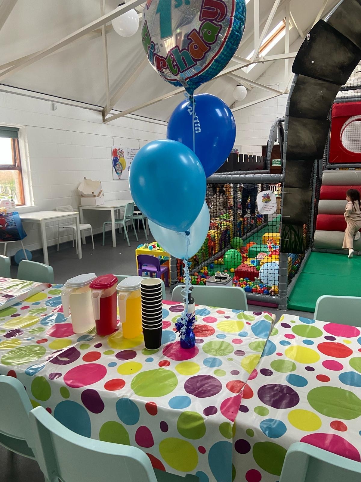 Option A . Includes 2 hours of play, (not private) unlimited juice, hot food , balloon