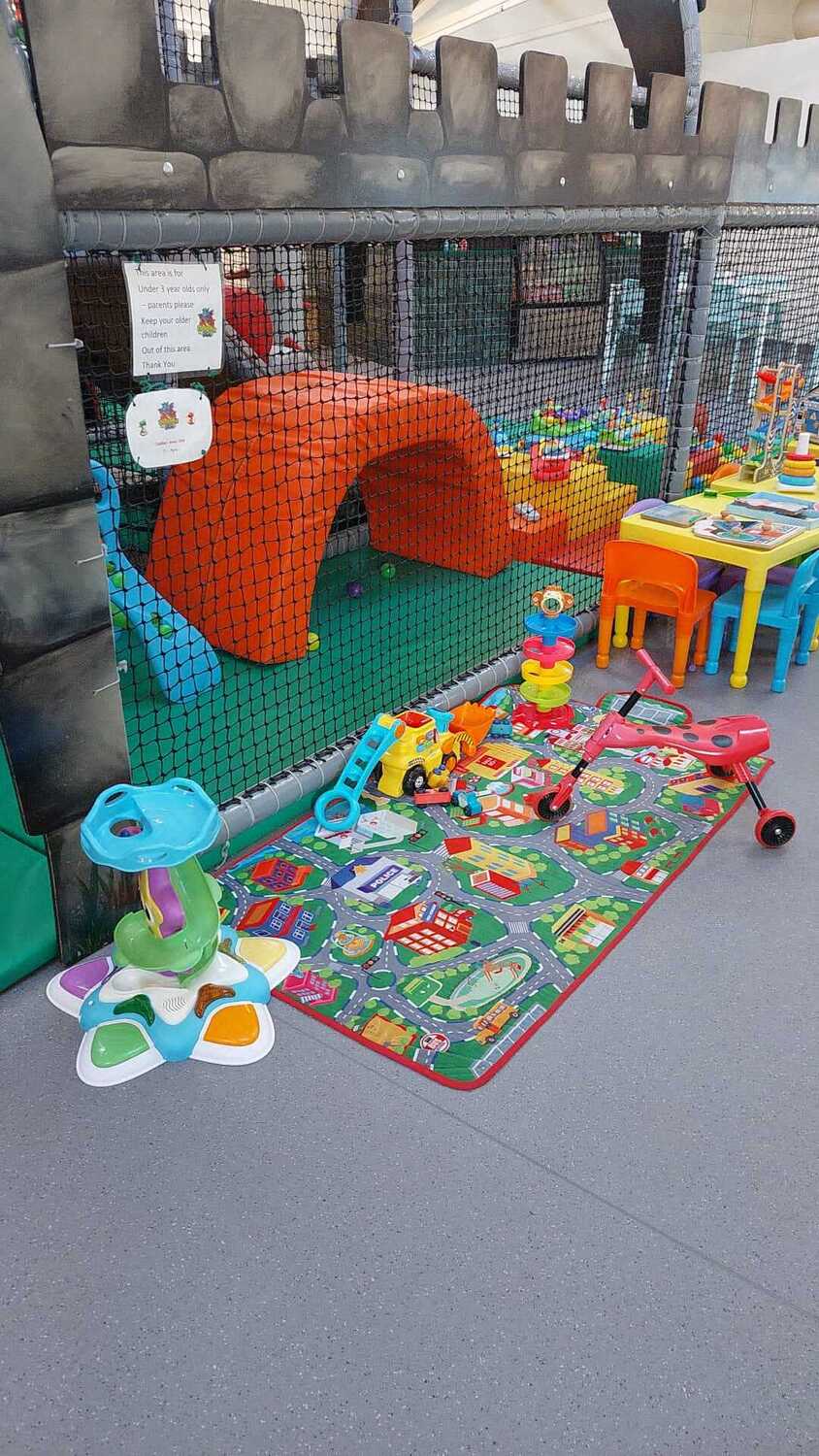All children must be 0 - 8 yrs old, or (1.45m height or 4ft 9") to play in our 'Castle'. There is a separate 'Toddler ' soft play section.